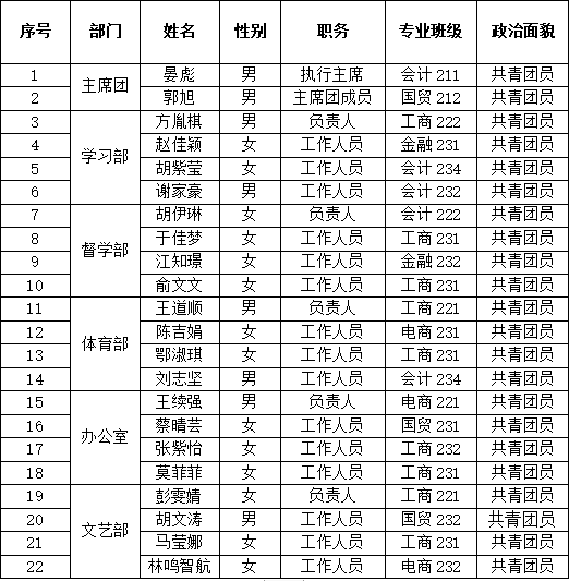 2、学生会工作人员名单展示如下图: