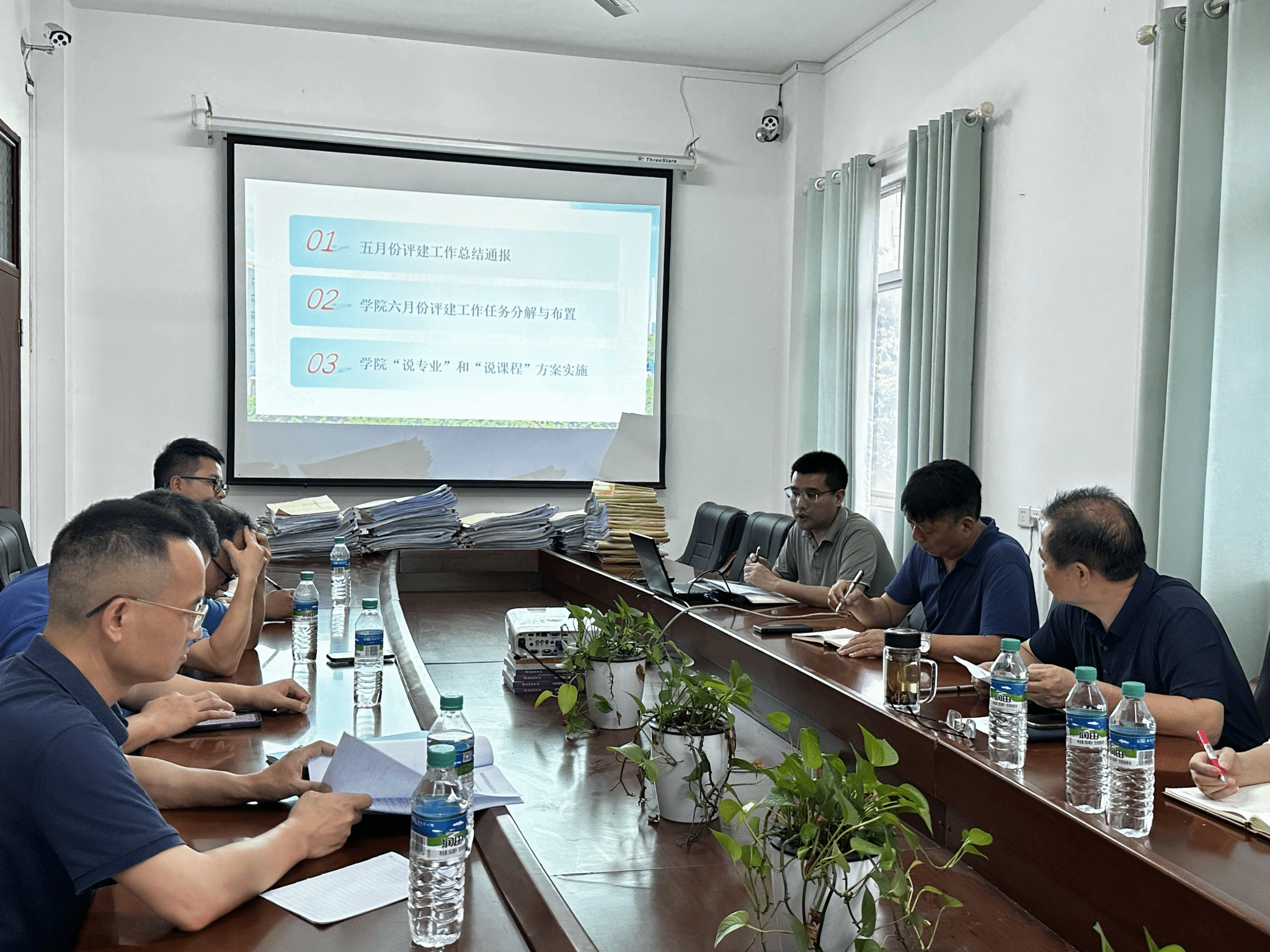 本网讯:为了扎实有效地做好学院“迎评促建”工作,6月13日,beat365在新民楼309会议室召开本科教学工作合格评估五月份工作总结暨六月份工作部署会。学院党委书记肖永鸿、班子成员、各教研室主任、学院评建办全体工作人员参加会议。
