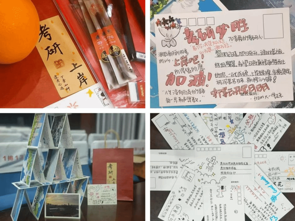 会议最后,学院领导、老师给同学们分发“考研加油包”。同学们激动的接过礼包,兴奋地与周围的同学分享,礼包不仅包含了实用的资料和文具,每一份手写加油卡更蕴含着学院对他们的深切关怀与鼓励。他们表示,大会如同一针强心剂,增强了他们的自信心,点燃了考研最后冲刺阶段的激情与动力。