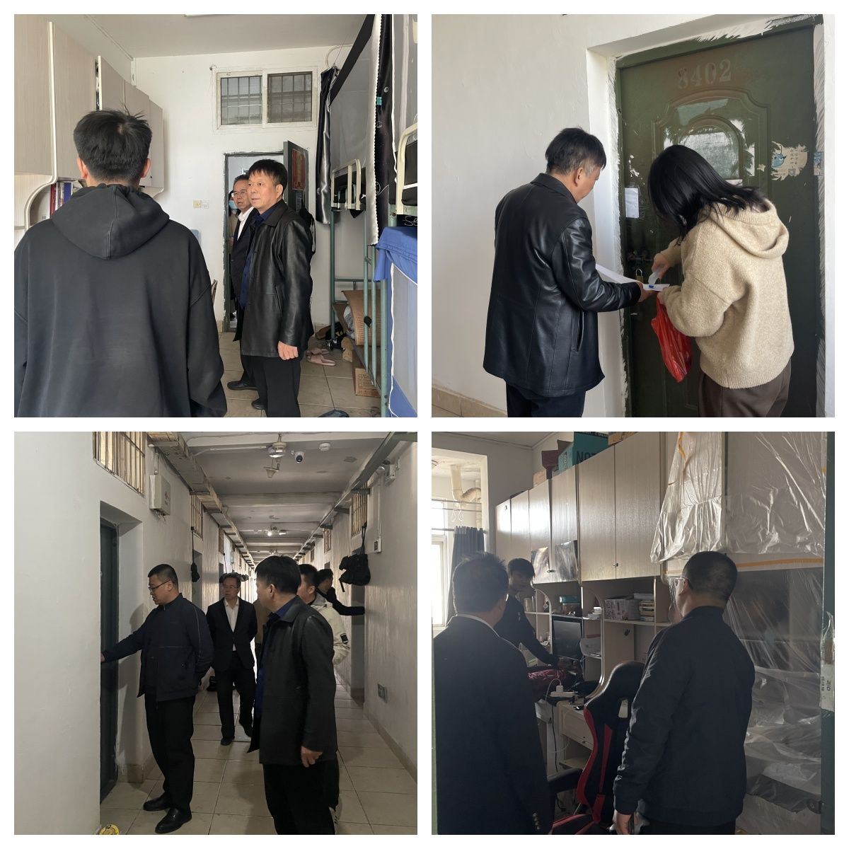 肖永鸿带领学院领导班子及全体辅导员对学生宿舍进行安全隐患专项检查。肖永鸿对学生离校情况进行重点核实,并检查学生宿舍内水电开关,着重对私拉乱接电线、室内存放易燃易爆品等突出安全问题进行检查。辅导员们对宿舍门窗进行全面检查,确保门窗关闭严实,为学生下学期顺利入住做好准备。