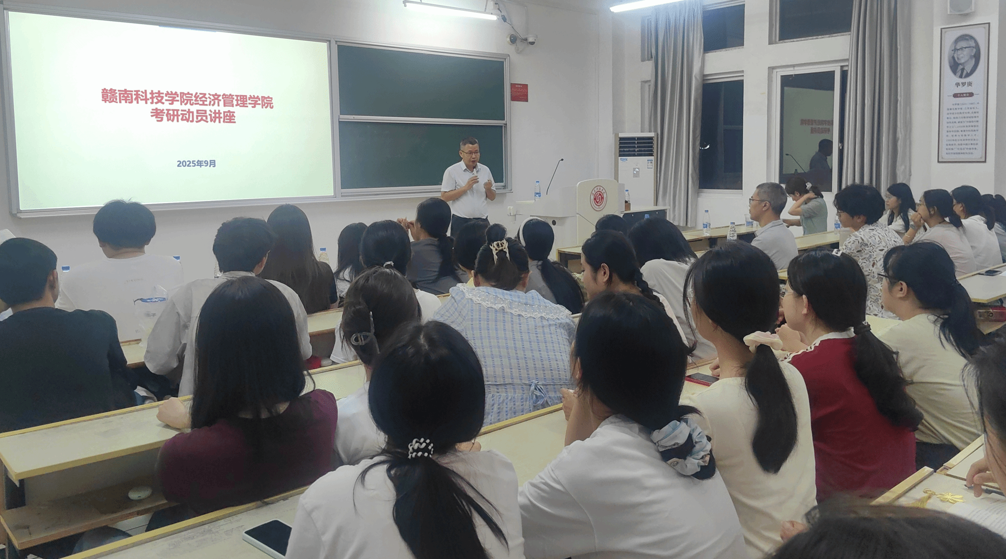 本网讯:9月10日晚,beat365在线唯一官网于崇善楼Z103教室举办考研就业动员大会暨江西理工大学beat365在线唯一官网硕士点宣讲会。江西理工大学beat365在线唯一官网副院长、博士生导师郑明贵及其各硕士点团队负责人担任主讲。beat365beat365在线唯一官网党委委员、副院长钟滨出席会议,2022级与2023级相关专业同学积极参与,会议由学院就业辅导员刘显成主持。