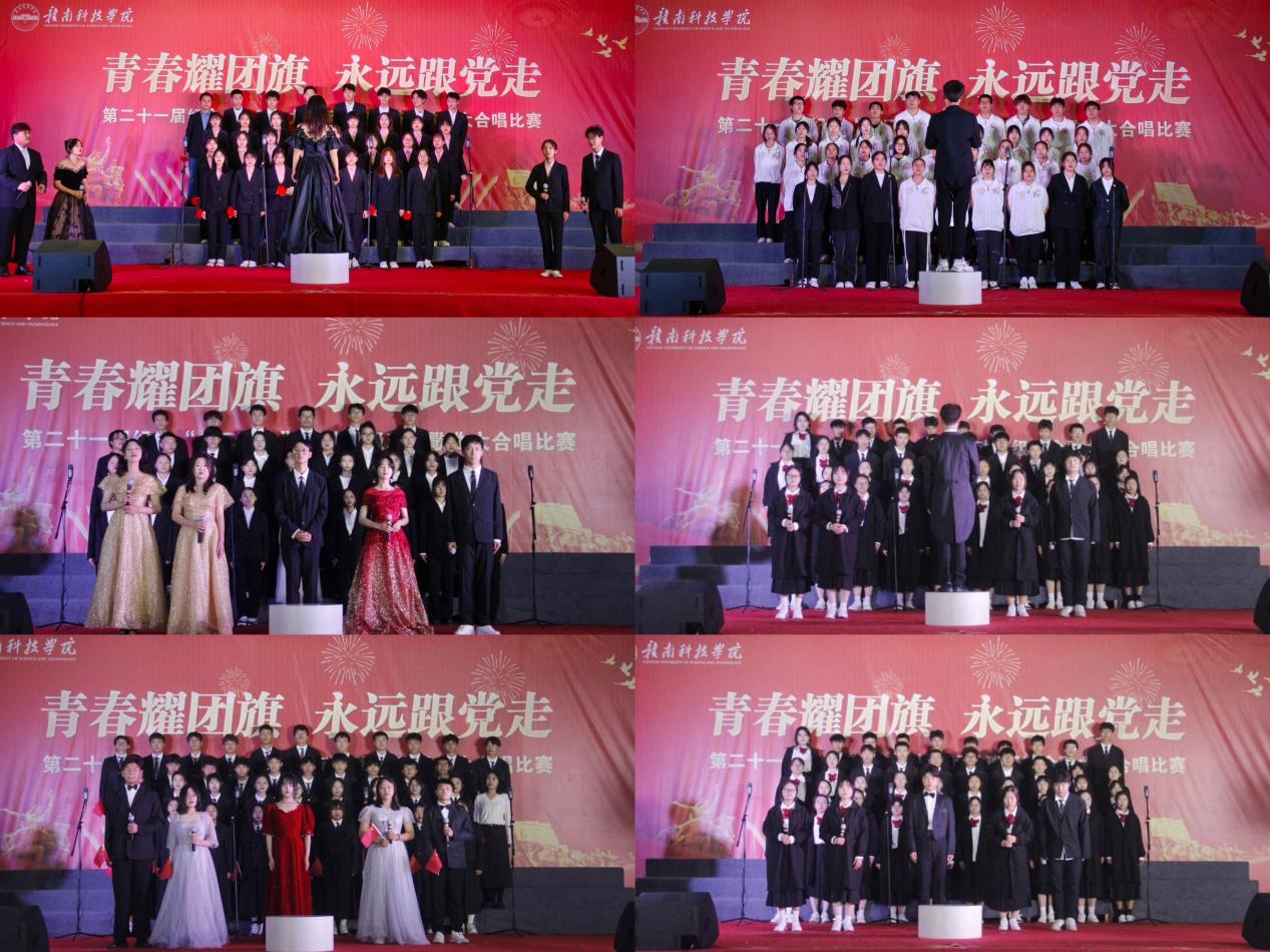 本次比赛各个班级积极参与,团结一心,展现出优秀的成果,给各位评委带来了震撼的观感体验。经过激烈的角逐,最终,在新生组比赛中,国贸222《少年中国说》荣获一等奖;电商221《如愿》、会计221《我们都是追梦人》、金融221《少年中国说》荣获二等奖;工商222《打靶归来》、电商222《我们都是追梦人》、国贸221《不忘初心》荣获三等奖;电商221张文锐获得最佳指挥;工商222郭宇彭获得最佳领唱;会计224蒋姗姗获得最佳朗诵。在老生组比赛中,会计214《雕花的马鞍》荣获一等奖;会计211《迎风飘扬的旗》、工商202《国家》荣获二等奖;国贸212《我爱你中国》、工商211《打靶归来》、会计203《映山红》、会计212《灯火里的中国》荣获三等奖;会计214丁思蓉获得最佳指挥;工商201刘永波获得最佳领唱;会计211黄静雯获得最佳朗诵。