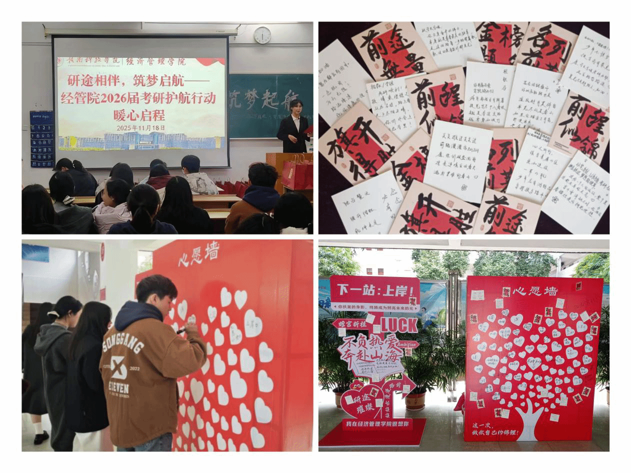 考研助力活动伊始,主持人以热情洋溢的开场白点燃现场氛围。随后,张煜老师结合自身经验与学科特点,从复习规划、心态调整、应试技巧等方面为学子提供细致指导,并用“坚定信念,你们的每一份付出都将在考场绽放光彩”的寄语传递温暖与力量。学院也为他们准备了定制助力礼包与学弟学妹手写的祝福贺卡,所有礼品均装入寓意“开门红”的礼盒中,老师与学弟学妹亲手送礼,并逐一送上“一战成硕”的祝福。在签名环节,学子们在心愿墙上郑重写下考研梦想与自我鼓励,每一笔都凝聚着成功的信念。