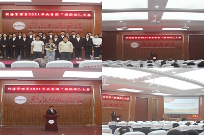 本网讯:为深入学习贯彻习近平新时代中国特色社会主义思想,认真贯彻落实全国高校思想政治、工作会议、团的十八大和十八届二中、三中、四中、五中全会精神,夯实我系共青团基层基础,创新团课教学形式,丰富团课教学内容。10月12日下午,经济管理系在逸豪学术报告厅举办了2021年共青团“微团课”大赛,院学生工作办公室王蓥莹老师、经济管理系团总支书记王博文、辅导员邹雄刚担任本次比赛的评委。