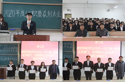本网讯:12月15日下午,经济管理系团总支学生会在主教Z1D3召开2020年度述职暨表彰大会。经济管理系副主任梁文学、团总支书记王博文以及全体学生会成员参加此次大会。