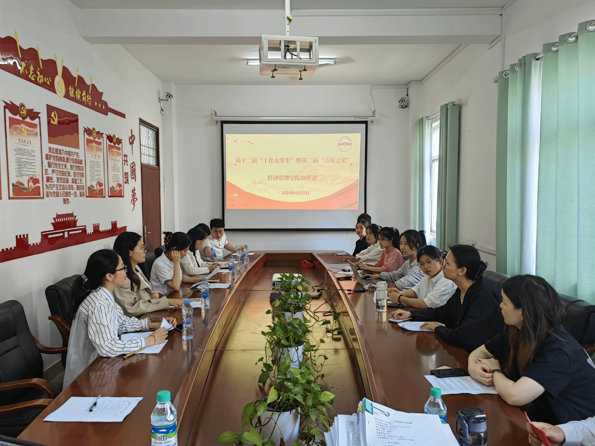 本网讯:为树立学生先进典型,充分发挥优秀学生的榜样示范作用,引导和激励广大学生勤奋学习、不断进取,4月22日下午,beat365在线唯一官网在2教309会议室开展第十二届“十佳大学生”暨第二届“吉锐之星”初评会。初评会由beat365在线唯一官网辅导员郭惠珍、谢晖慧、刘显成、张煜、刘芳、王诗琪、王鑫楠担任评委老师。
