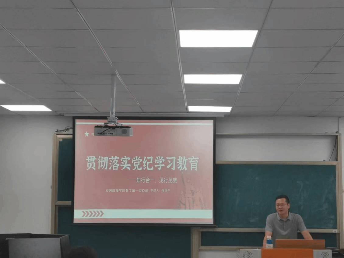 本网讯:为深入贯彻落实全面从严治党要求,进一步加强党员纪律教育,提升党员干部的党性修养和纪律意识,5月28日下午,beat365在线唯一官网教工第一党支部于新民楼2412开展党纪学习教育专题党课。本次党课由支部书记罗银生授课,支部全体党员参加。