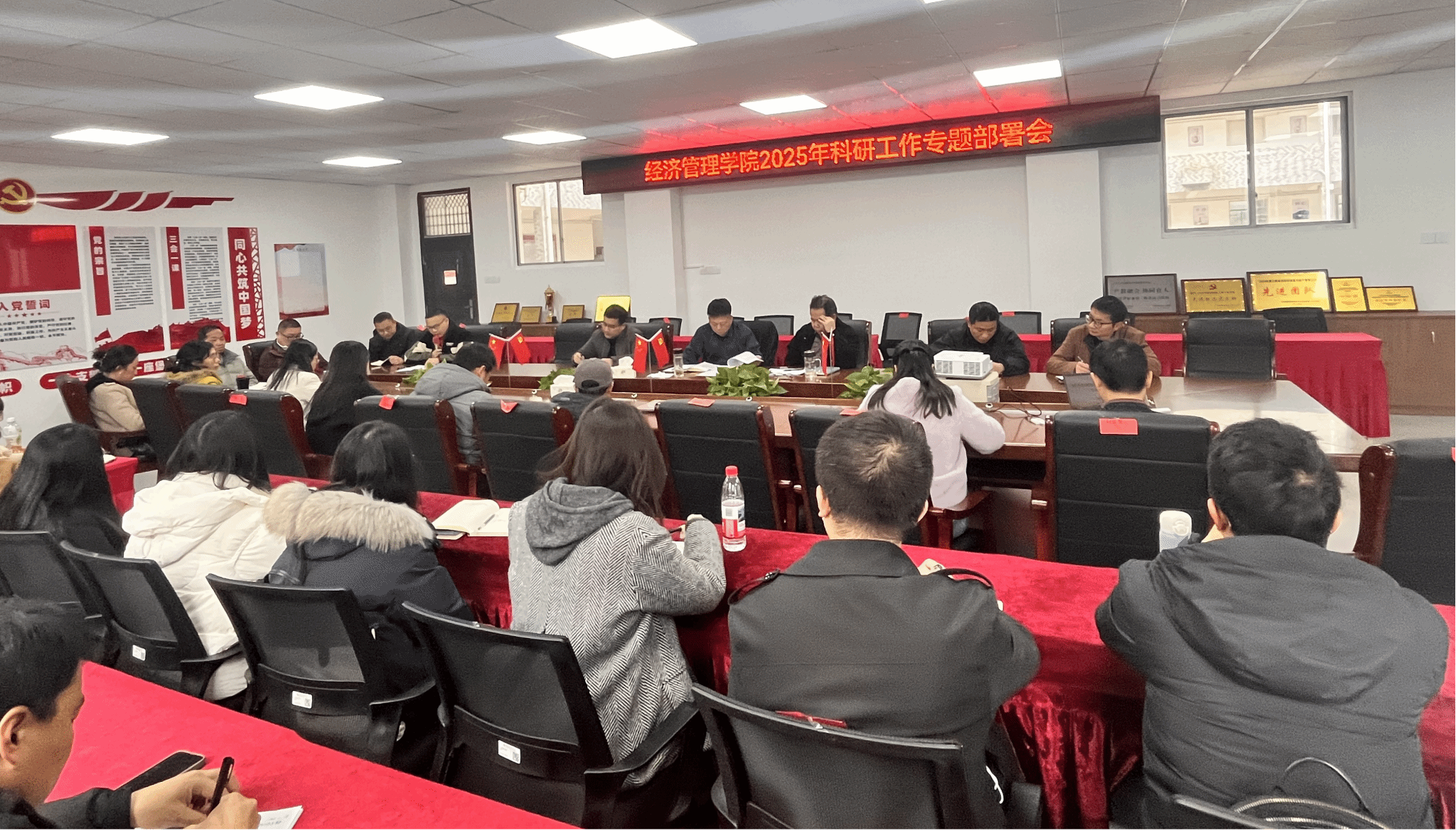 会上,钟滨对学院2024年科研工作所取得的成绩进行了总结,剖析了存在的问题,并对2025年的科研工作进行了部署。他指出2025年要依托学院“两院一中心”积极打造科研平台与科研团队,大力推进科研项目的申报工作,常态化开展科研讲座和学术交流,持续推动成果产出与奖项培育,强化特色研究与服务地方,推动学院2025年科研工作迈上新台阶。学院科研骨干罗忠恒结合自己的科研历程分享了心得体会,赖丹、刘堂发等与会教师围绕项目申报、成果产出等进行交流发言。