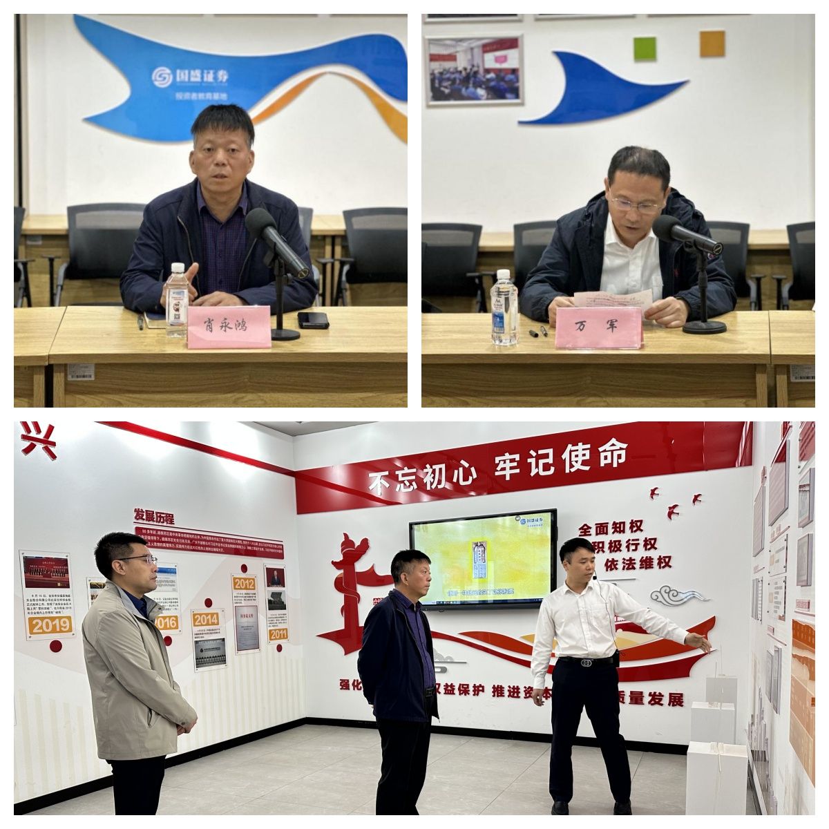 肖永鸿一行来到国盛证券,在万军等人的陪同下,参观国盛证券的党建文化宣传廊,并就党建引领、人才培养、业务发展等方面展开深入交流,探讨今后党建共建的合作方向。