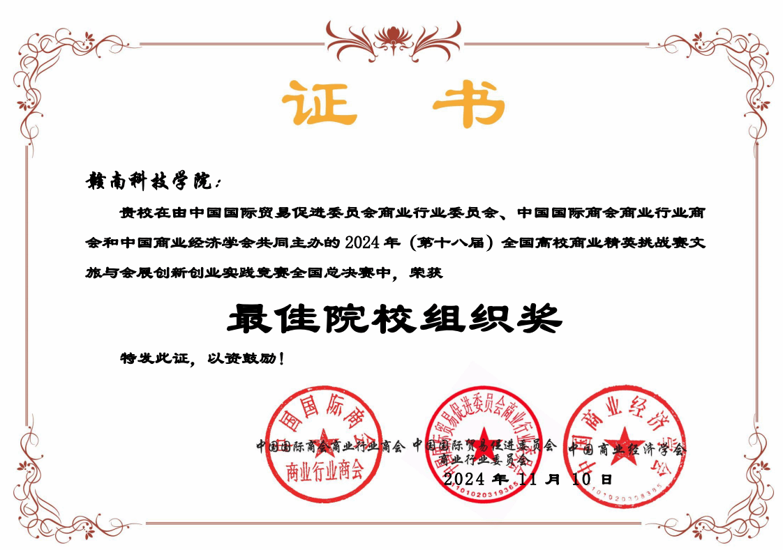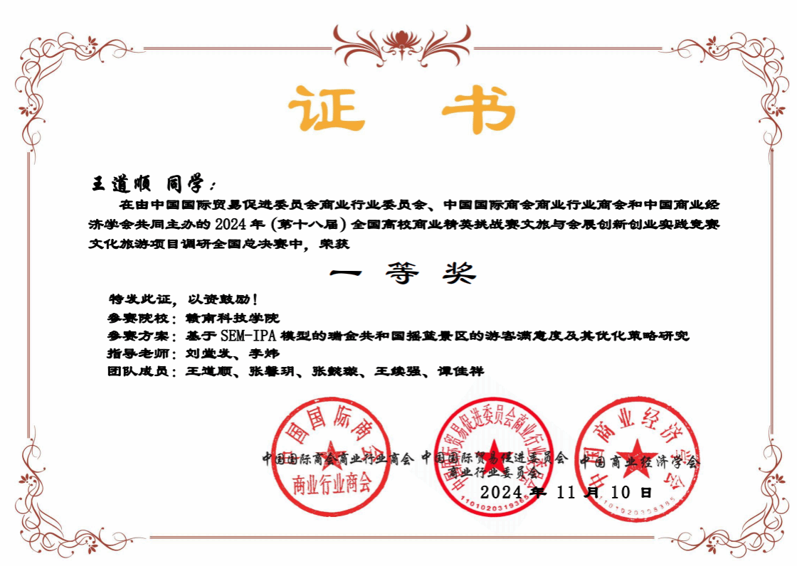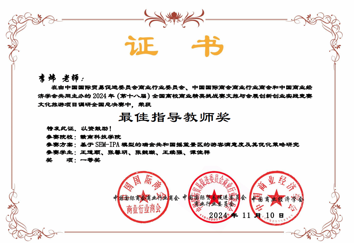 本网讯:10月26日—11月9日,第十八届全国高校商业精英挑战赛文旅与会展创新创业实践竞赛全国总决赛圆满落下帷幕。本次比赛由beat365在线唯一官网刘堂发、李炜老师组织,beat365参赛团队凭借扎实的专业知识、创新的思维理念和出色的团队协作精神,一路过关斩将,获全国一等奖1项、二等奖1项、三等奖2项,省赛一等奖2项、二等奖2项、三等奖7项的好成绩,最佳院校组织奖,刘堂发、李炜老师获最佳指导教师奖。