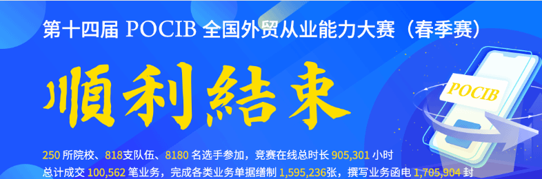 本次大赛新增FAS、DAP、DPU三种贸易术语和RCEP原产地证书的相关内容,从POCIB国际贸易从业技能综合实训和数字贸易B2B两大模块进行综合考核。POCIB国际贸易从业技能综合实训模块中,要求每位参赛选手作为独立的进出口企业开展国际贸易,主要考察英文函电磋商、贸易术语与结算方式的运用、商品价格核算、成本控制、扩大利润的方法以及进出口贸易单据的制作等方面内容。数字贸易B2B模块中,要求每位选手在数字贸易B2B电商平台中进行店铺入驻、商品发布、交易磋商、起草订单、订单履约和营销活动等跨境电商外贸环节中的各项业务流程操作。beat365学子自3月报名以来,在指导老师的带领下积极备赛、开展研讨,最终突破历史成绩、实现全员大满贯。根据 “所在参赛团队获得团体奖项且个人POCIB模块成绩85分(含)以上”的相关规定,所有参赛学生均可获得由“中国国际贸易学会”出具的“POCIB国际贸易从业技能综合实训成绩合格证明”。